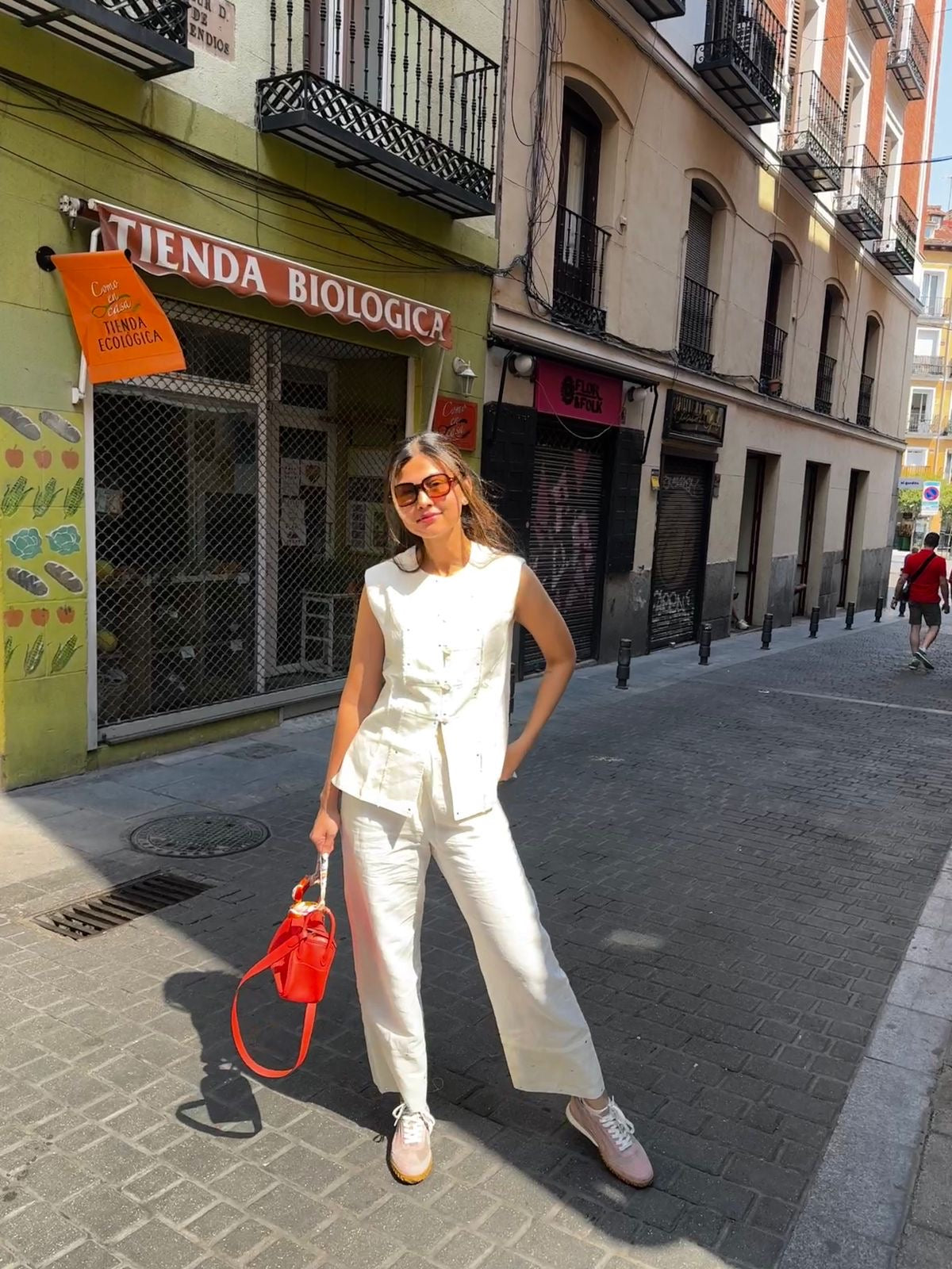 The relaxed-fit pants fall naturally and are finished with delicate gold dot work at the hem — making it a versatile go-to for effortless styling, whether you’re hosting a brunch or strolling through a weekend market.